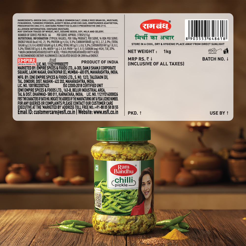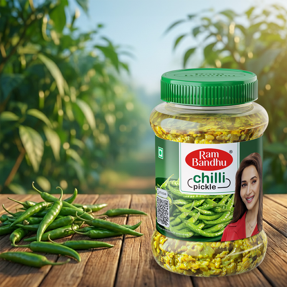 Ready to eat Chilli Pickle from the house of Ram Bandhu is the ultimate mood builder. All ingredients are meticulously hand-picked. The exquisite quality and taste of our pickles are liked and revered by all our consumers.