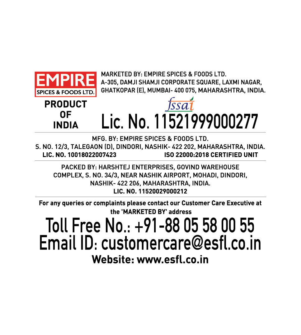 | Net Quantity: | Mentioned In Pack Sizes Drop Down Menu |