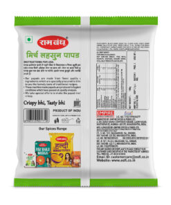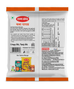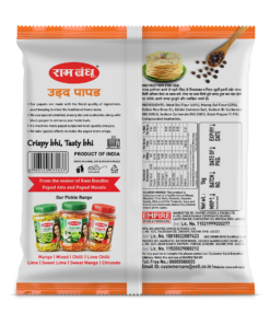 Moong Papad (ready to cook) from the house of Rambandhu is the ultimate in accompaniments / snacks which are ready in a snap and taste just awesome. Made from excellent quality moong dal and handpicked spices these delicacies are a mood maker for any occasion – be it a party or the family dinner. Special aluminium foil packaging ensures longer shelf life and lasting freshness.
