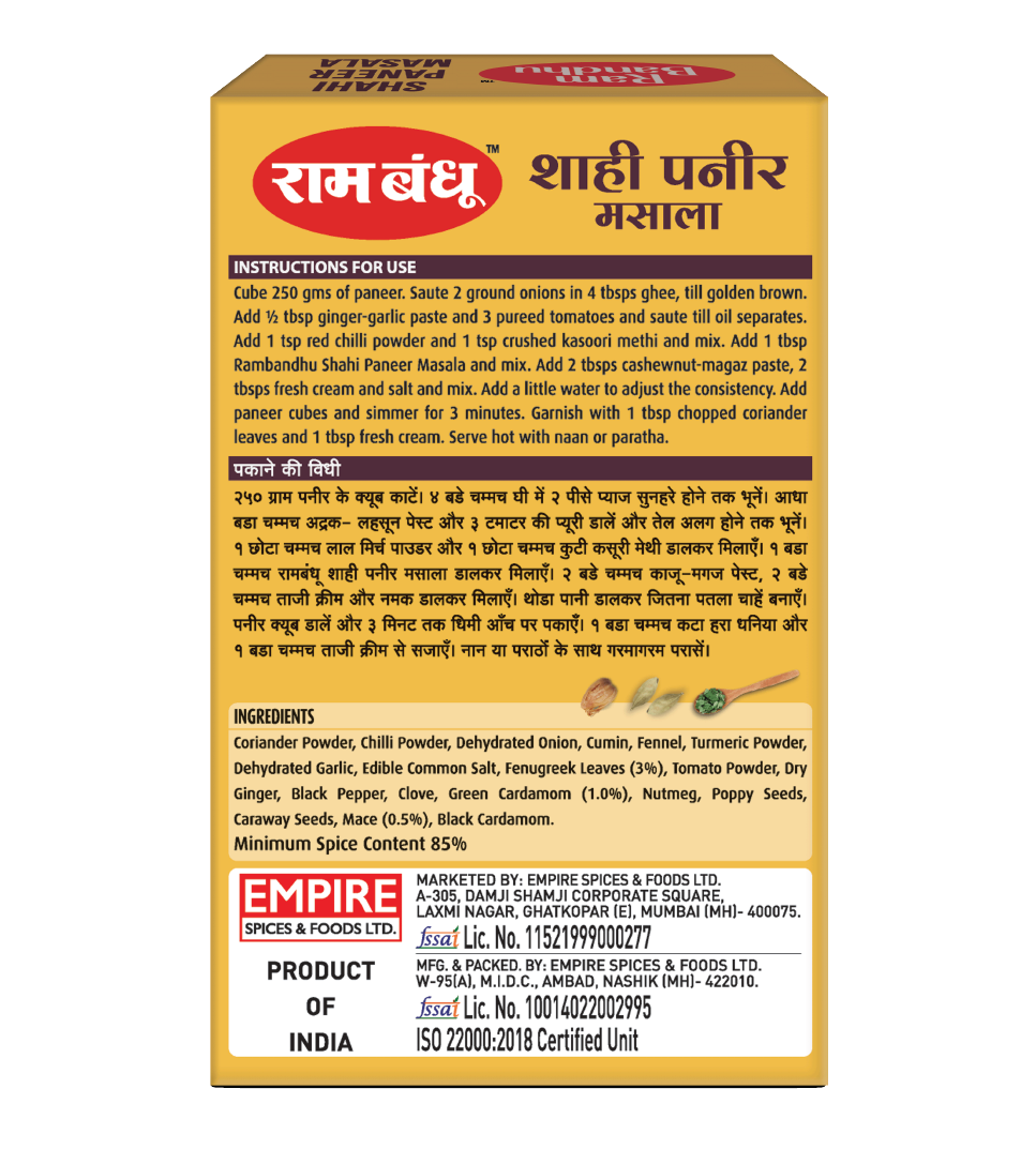The secret of royal Indian cuisine brought to you in a convenient easy to cook blend. Your paneer preparations will never be the same again !