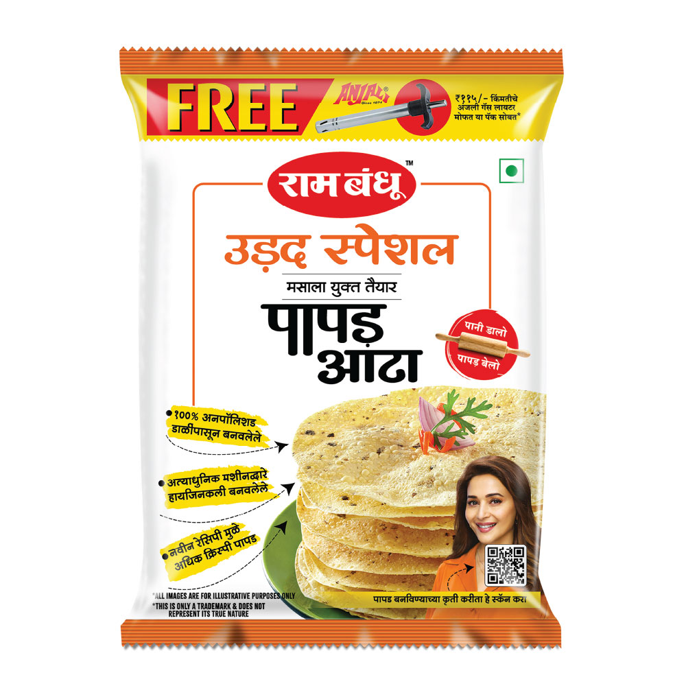 “Pani dalo papad belo” – the simple mantra of Rambandhu’s pioneering Papad atta product. This papad atta comes with all the required spices already blended within it (including Kali Mirch [Black-Pepper] & Hira Hing [Premium Asafoetida]) in perfect proportion to make the housewife’s job easier; producing tasty, crunchy papad every time.