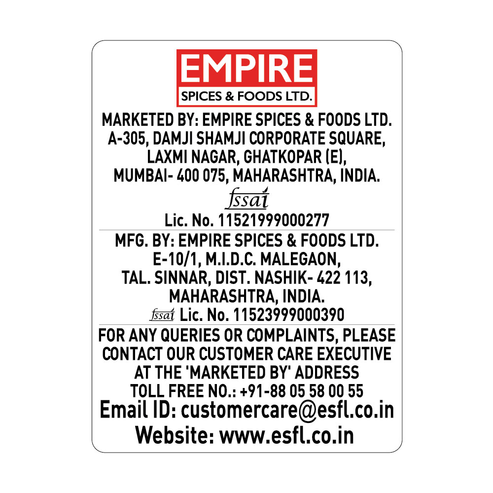 | Shelf life: | Mentioned In Pack Sizes Drop Down Menu |