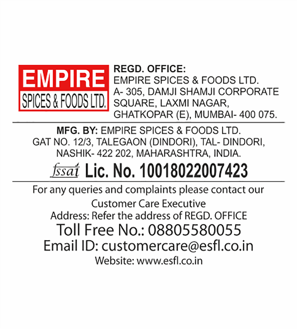 | Shelf life: | Mentioned In Pack Sizes Drop Down Menu |
